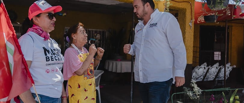 Ayer, el candidato del PAN-PRI-PRD por la Alcaldía de Camargo Jorge Aldana visitó la conocida "Cuadra del Pollo" dónde los vecinos recibieron gustosos al candidato.