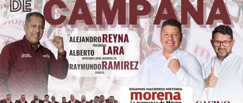 Camargo.- 27 de mayo del 2024. El próximo miércoles 29 de mayo de 2024, Alejandro Reyna Tirado, candidato a la presidencia de Camargo por el partido Morena, celebrará su gran cierre de campaña. Este significativo evento se llevará a cabo en el Casino Petrolero, un lugar emblemático para la comunidad, y dará inicio a las 6:30 de la tarde. Con una organización meticulosa, se espera que el evento sea un punto culminante en la campaña de Reyna Tirado.