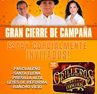 El evento no solo contará con discursos políticos y mensajes de esperanza, sino que también estará amenizado por la presentación musical del grupo Orilleros del Conchos. Esta banda, conocida por su estilo único y su capacidad para animar a la audiencia, promete hacer de la noche una experiencia memorable para todos los asistentes.