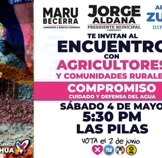 Camargo.- 3 de mayo del 2024. Estarán presentes la candidata a Síndico Maru Becerra y el candidato a diputado local Arturo Zubía.