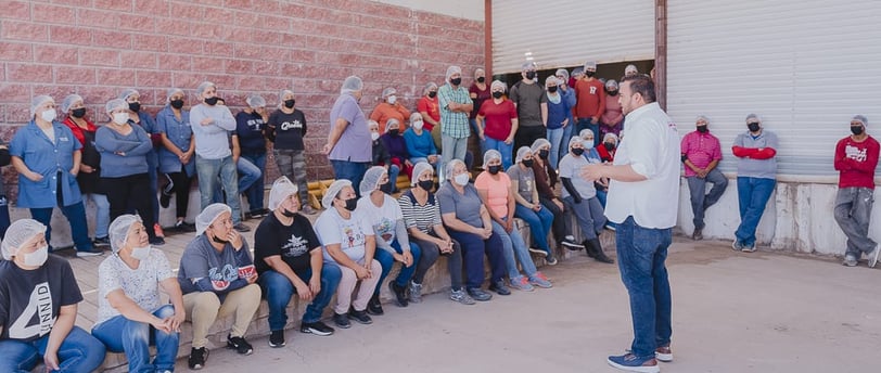 El candidato a la Presidencia Municipal de Camargo por los partidos PAN-PRI-PRD, Jorge Aldana, visitó dos maquiladoras dedicadas al procedimiento de productos del campo como son Agroindustrias Deandar y Ramos Hermanos.
