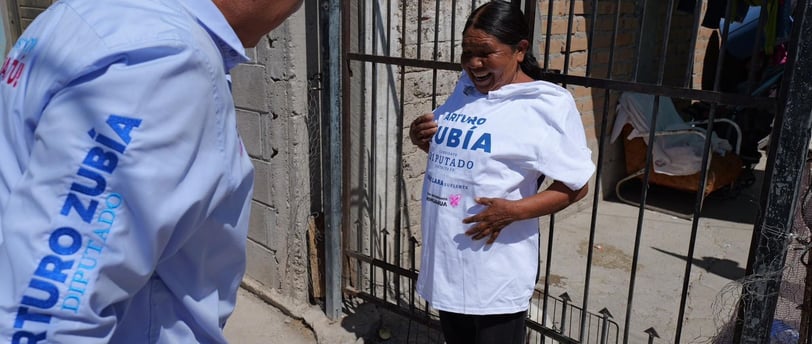 Camargo. - 7 de mayo del 2024. El día de ayer lunes 6 de mayo. Doceavo día de campaña, El candidato a la diputación Local por el XX Distrito Arturo Zubía, realizó visita a su natal Camargo, en donde recorrió a primera hora del día la tan reconocida colonia Revolución, compartiendo propuestas en cuestión de Apoyos al emprendimiento, educación y a la mujer.