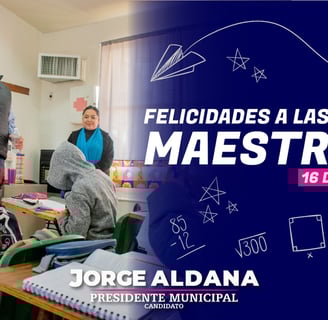 Este 15 de mayo, Jorge Aldana envío una felicitación para los maestros camarguenses mismos quienes han mostrado su respaldo al candidato por el trabajo que han hecho en conjunto a favor de la educación.