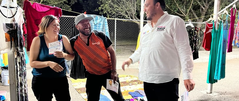 Reciben comerciantes de venta nocturna a Jorge Aldana en mercado de la Abraham González: "Cuentan con nuestro apoyo para que ésto crezca"