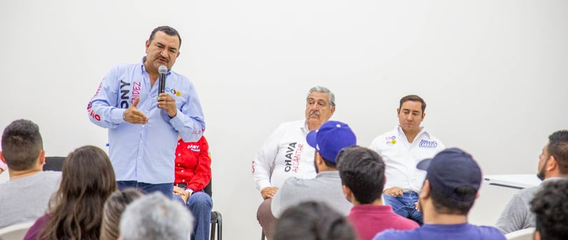 El candidato de la Coalición Fuerza y Corazón por México, Tony Meléndez, se reunió con colaboradores y empleados de diversas empresas de Delicias, esto en compañia de Jesús Valenciano, Roberto Carreon y Gaby Franco, quienes expresaron sus mensajes de propuesta y cercanía.